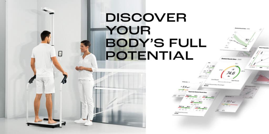 The Science: It uses Bioelectrical Impedance Analysis (BIA) to send a safe, imperceptible signal through the body. Because muscle holds water and fat does not, the machine can accurately map your body composition with clinical precision.